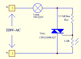 The lm358 ic has 8 pins and can have supply voltages ranging from 3 32 volts. A voltage divider made using ldr ldr1 and a potentiometer rv1 b output led d1 in our switching circuit made using a. Ldr darkness circuit diagram darkness circuit using the comparator this circuit uses directly 220v ac. This is ldr circuit for automatic night light operated by light sensor ldr light dependent resistor. In day bulb is automatic switch off and at night automatic switch on. This makes the voltage at the base of the transistor too low to turn the transistor on.